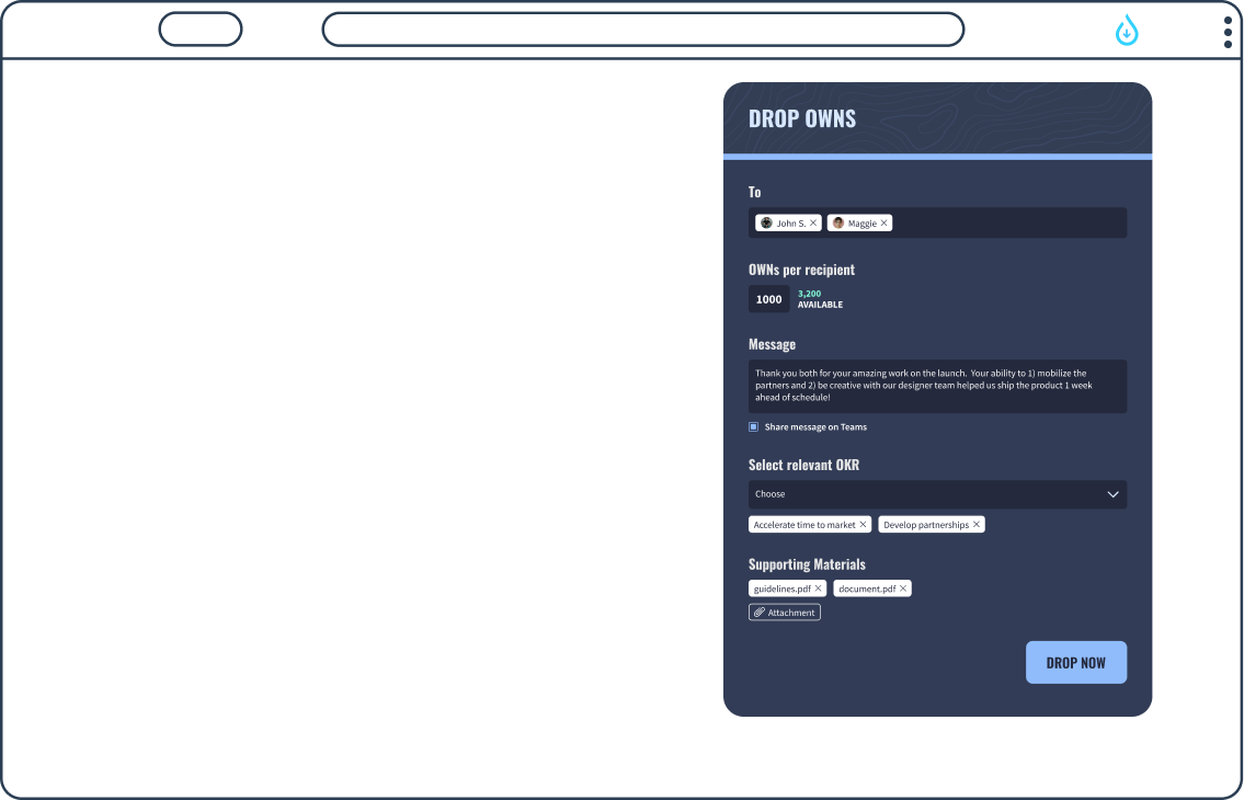 “With OWN, in two clicks I’m able to recognize someone when they run the extra mile. These drops tie to actual outcomes and OKRs, they get recorded and my team knows that I am invested in their career”